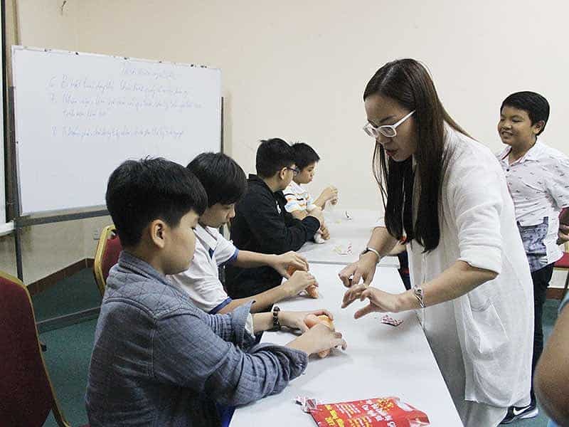 HCM: Học viên khối THCS thực hành cách đeo bao cao su