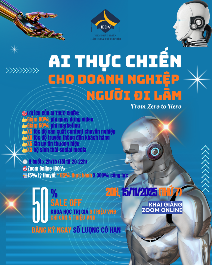 Với mục đích mang lại giá trị cho cộng đồng doanh nghiệp Vapec; Ban thường trực phối với với Viện Phát triển Giáo dục và Trí tuệ Việt tổ chức khóa “AI THỰC CHIẾN CHO NGƯỜI ĐI LÀM”