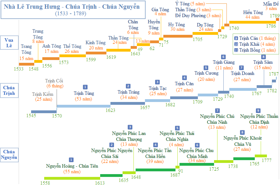 Triều Lê Trung Hưng (1533–1789) – đây là triều đại dài nhất so với các triều đại Việt Nam với 256 năm; tiếp nối mệnh trời, khôi phục quốc hiệu Đại Việt, giữ hồn dân tộc không bị diệt vong. Nhiều bậc danh thần, đại nho, võ tướng họ Lê như Lê Quý Đôn – bậc đại học sĩ, nhà bác học toàn tài, tác giả “Kiến văn tiểu lục”, “Phủ biên tạp lục”…đã góp phần giữ cho quốc học, quốc đạo không bị tàn phai.